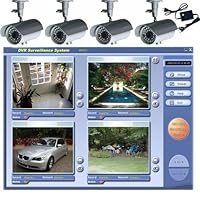 Professional DVR Card and Camera Kit, it turns your PC into a Professional DVR with Remote Internet Viewing, Motion Detection, Alarm input recording and More. This DVR is a PC based, multi-channel video surveillance system that utilizes the most advance digital video compression technologies to bring you the highest picture quality and video performance. 4 real cameras can be connected and view live on a local monitor screen. Video can be recorded basing on specifiable schedules or motion detection. You can store video clips in HDD. It provides significantly clearer digital images than conventional analog CCTV system using VCR. Package Included: 4 color Infrared cameras; 1 DVR Card with 4 Channel input; 1 power supply for 4 security cameras; 1 Software and manual CD. Free surveillance warning sticker. Notice: This listing is for hardware only. Software is free. Intensive PC and CCTV technical knowledge and experience are required for installation.Installation support is not included.It works with Intel PC with Windows XP and 2000, 98. It does not work with Windows 7 and Vista 64 bit. AMD computer will not work. Please check your PC before making the purchase. We are not responsible for compatibility issues. Camera extension cable not include, sold separately.